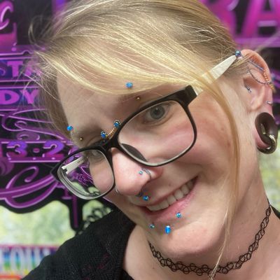 Kim has been piercing for the last decade, and knows her way around some big needles. She'll work with you on placement of new piercings to make sure that you're happy with the way your new jewelry looks whether it's your first piercing or you're looking to add to your collection. She might inflict a little pain, but you'll leave smiling and thanking her for it!